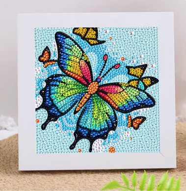 • Borboleta 2025/1 (18cm x 18cm) - 100% Diamantes (Redondo) com Moldura - Pronta Entrega - Kit Completo