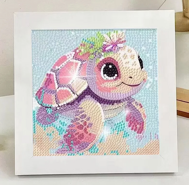 Tartaruga 2024/1 (15cm x 15cm) - 100% Diamantes (Redondo) com Moldura - Pronta Entrega - Kit Completo