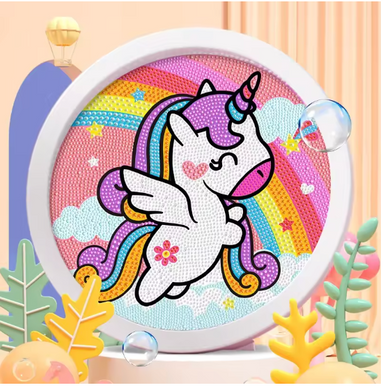 Unicórnio 2024/5 (17cm x 17cm) - 100% Diamantes (Redondo) Com Moldura - Pronta Entrega - Kit Completo