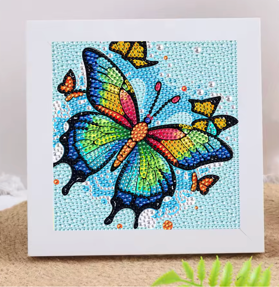 Borboleta 2025/1 (18cm x 18cm) - 100% Diamantes (Redondo) com Moldura – Diamond Art